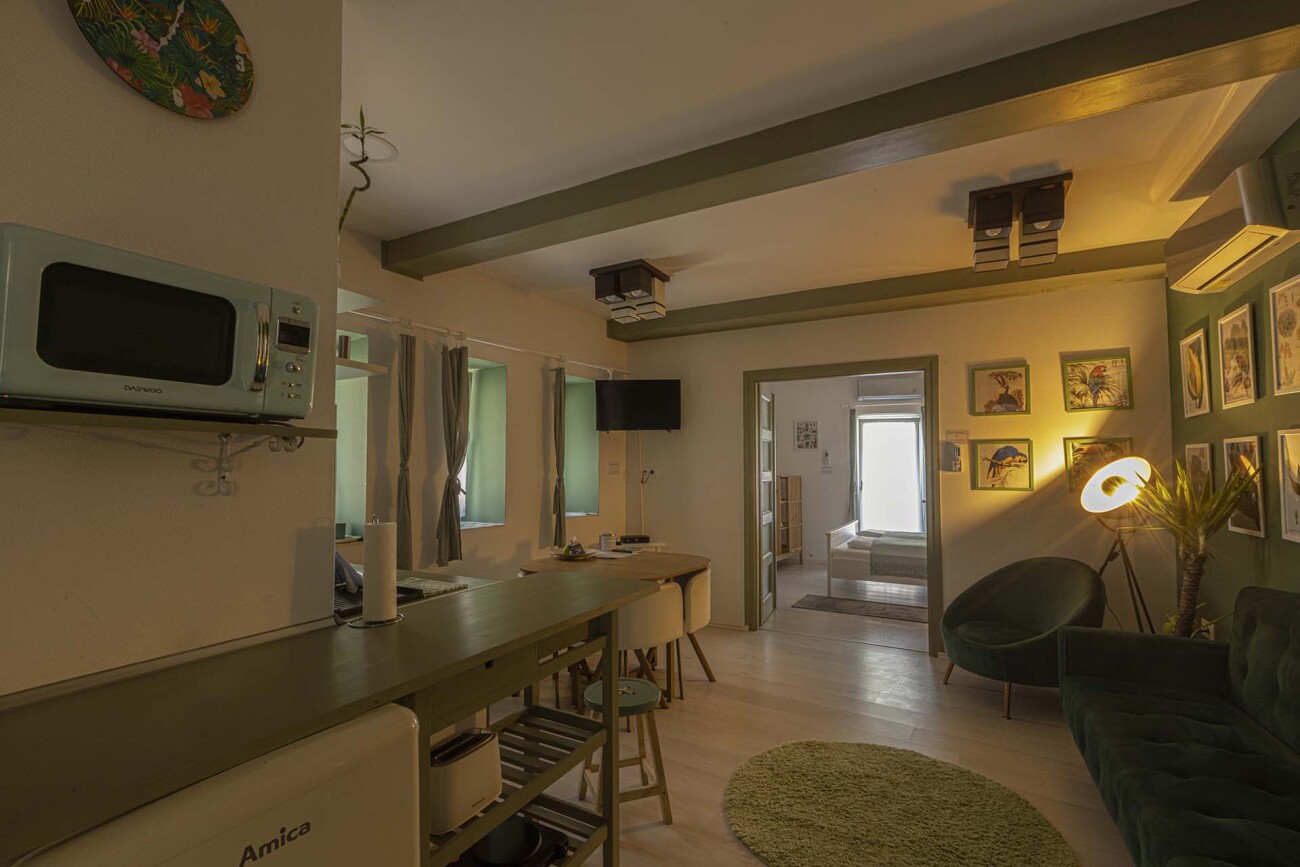 Az épület ízlésesen berendezett, különleges hangulatú, otthonos minden négyzetmétere. Az apartmanok fürdőszobával és kis konyhával felszereltek. Kiváló passzív jövedelem források.