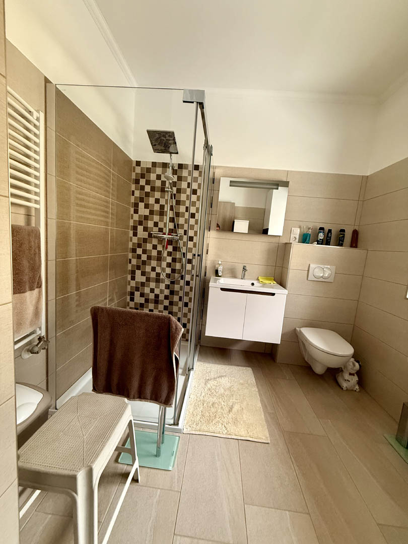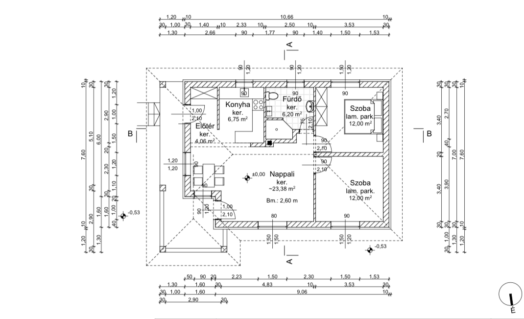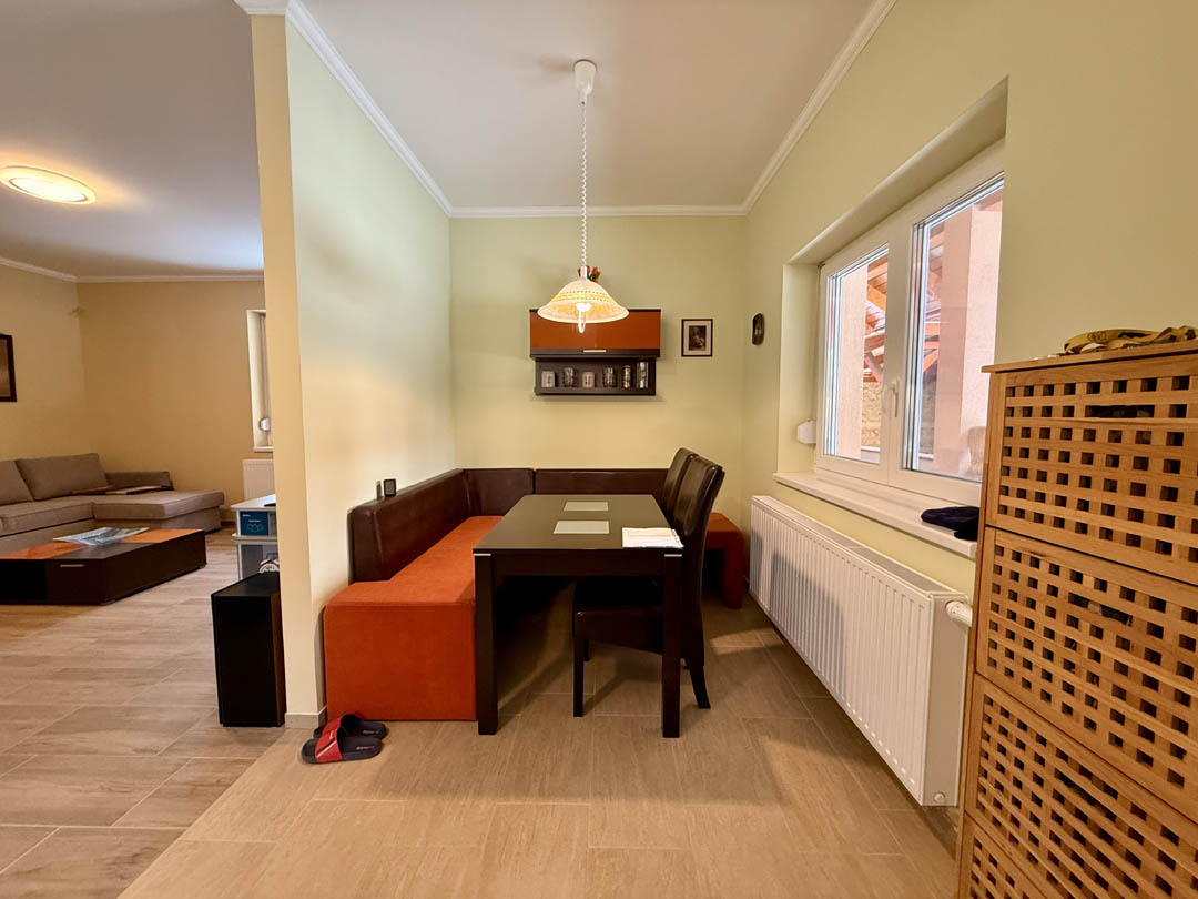 Az ingatlan a teraszkapcsolatos étkező-konyha-nappali egy légtérben található (30 négyzetméter), kicsit eltolva a térben. Praktikus elrendezésével, tágas ablakos fürdőszobájával (6,2 négyzetméter) és 12 négyzetméteres szobákkal ideális elosztás 1-2-3 fő számára.