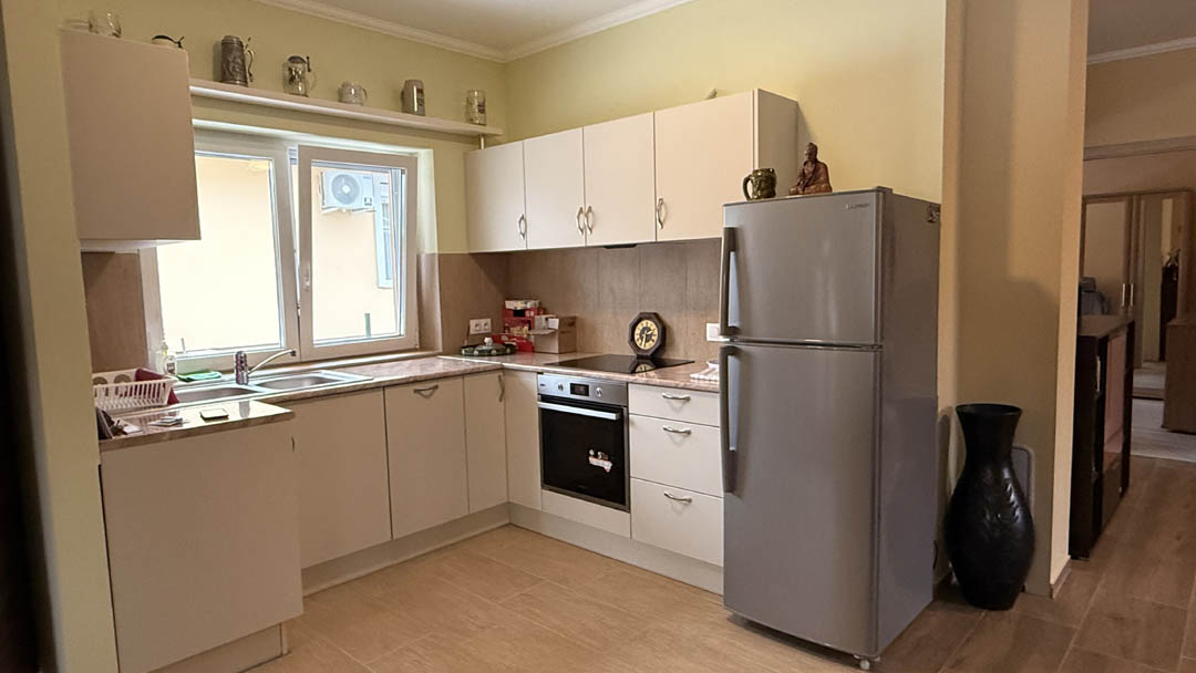 Az ár tartalmazza a beépített bútorokat és a beépített gépesített konyhát. (van mosogatógép kiállás)