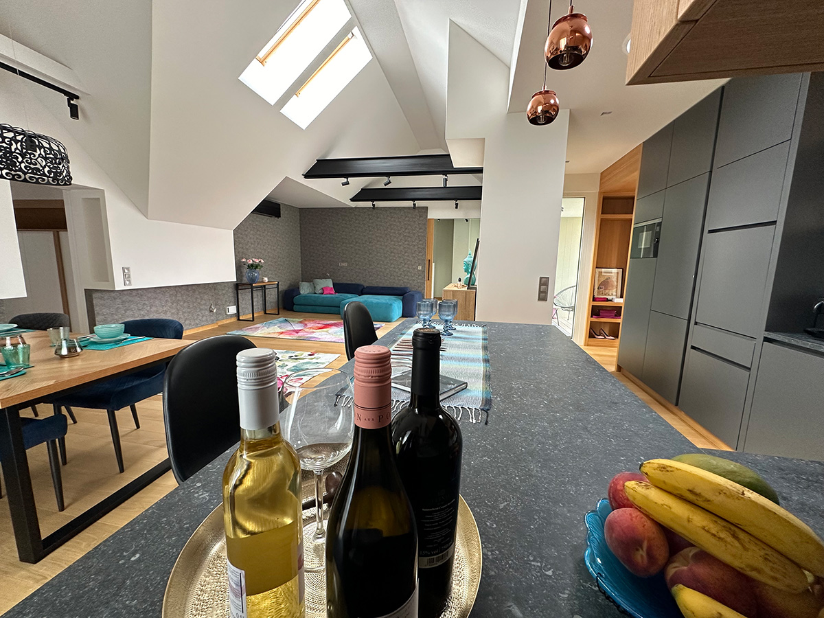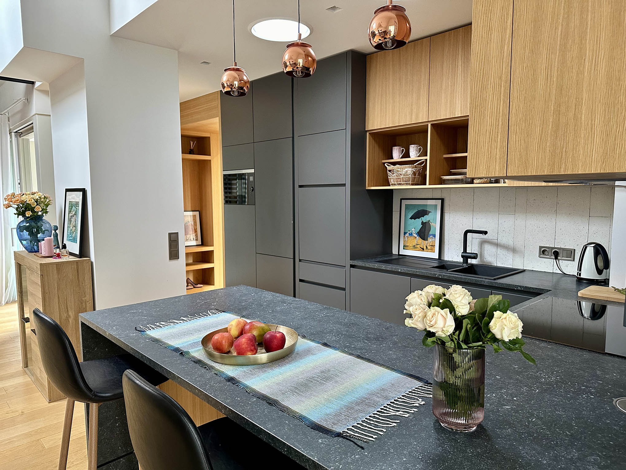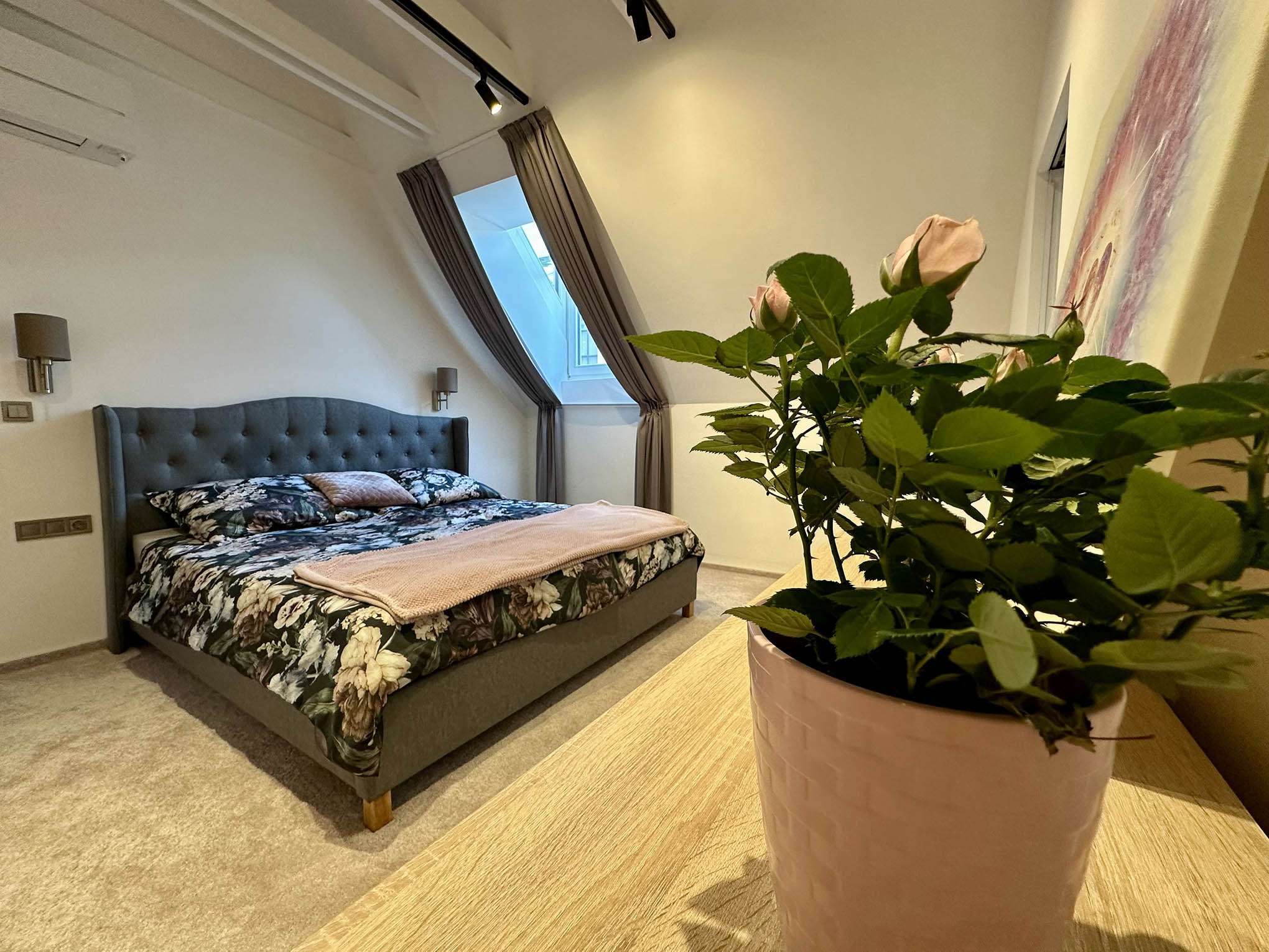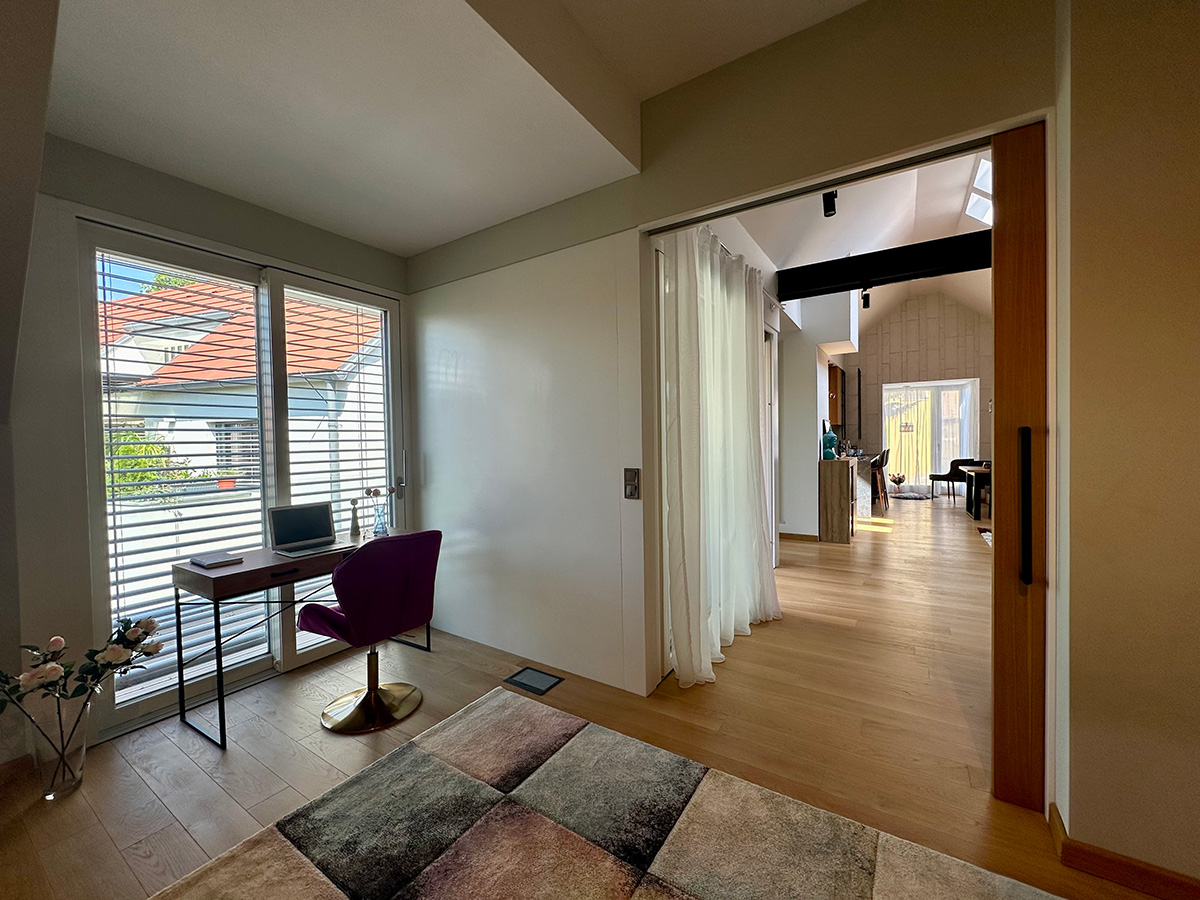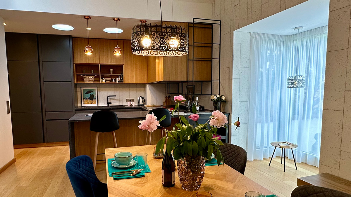 A mediterrán szentendrei életérzés, a művészetek és a Duna közelsége mind egyedivé teszi a belváros hangulatát. Az Év Háza 2021. pályázat különdíját elnyert épületet és a lakást letisztult elegancia, nagyvonalú térkialakítás és egyediség jellemzi.