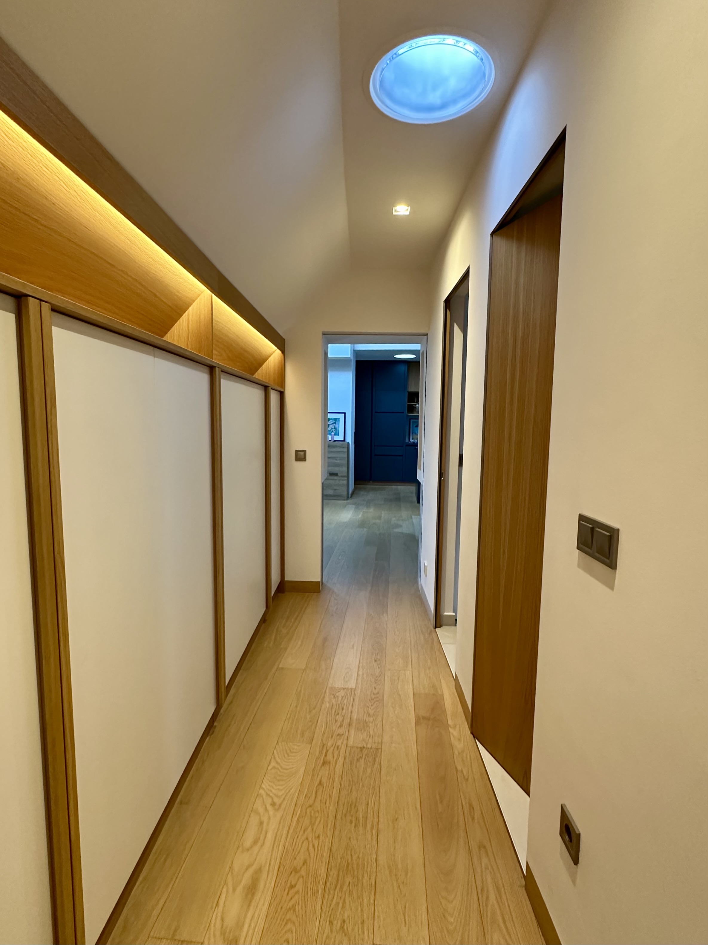 A beépített gardróbok és a tágas háztartási helyiség elhelyezésével maximális a térkihasználás.