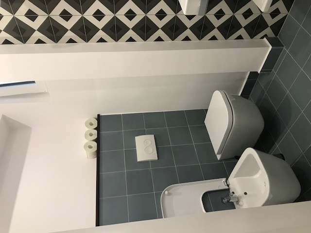 A lakásban az amerikai konyhás nappalin kívűl 2 hálószoba, háztartási helyiség, kádas WC-s-bidés fürdőszoba, WC és előtér van.