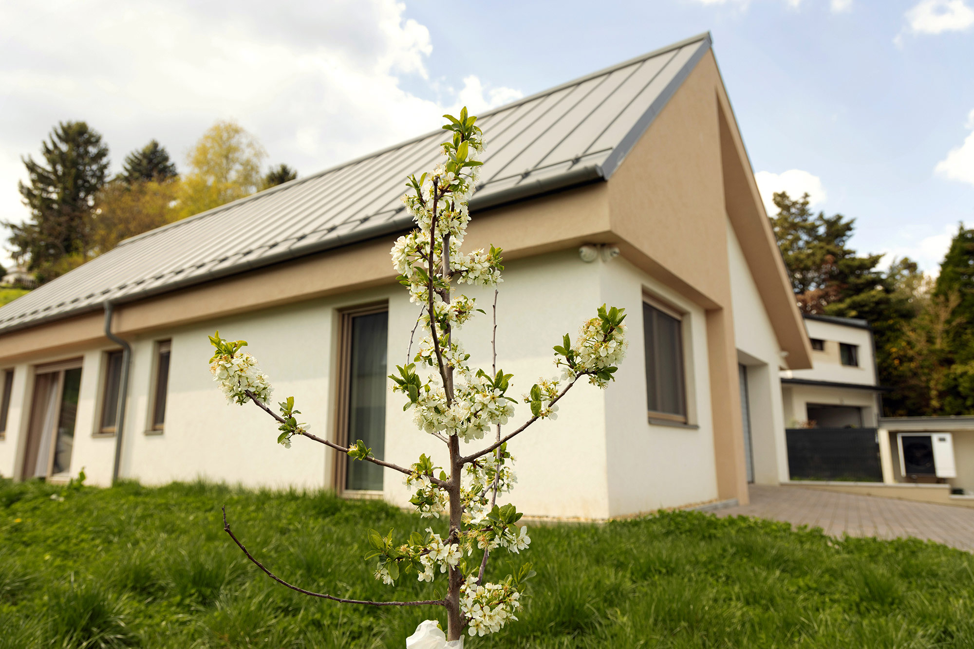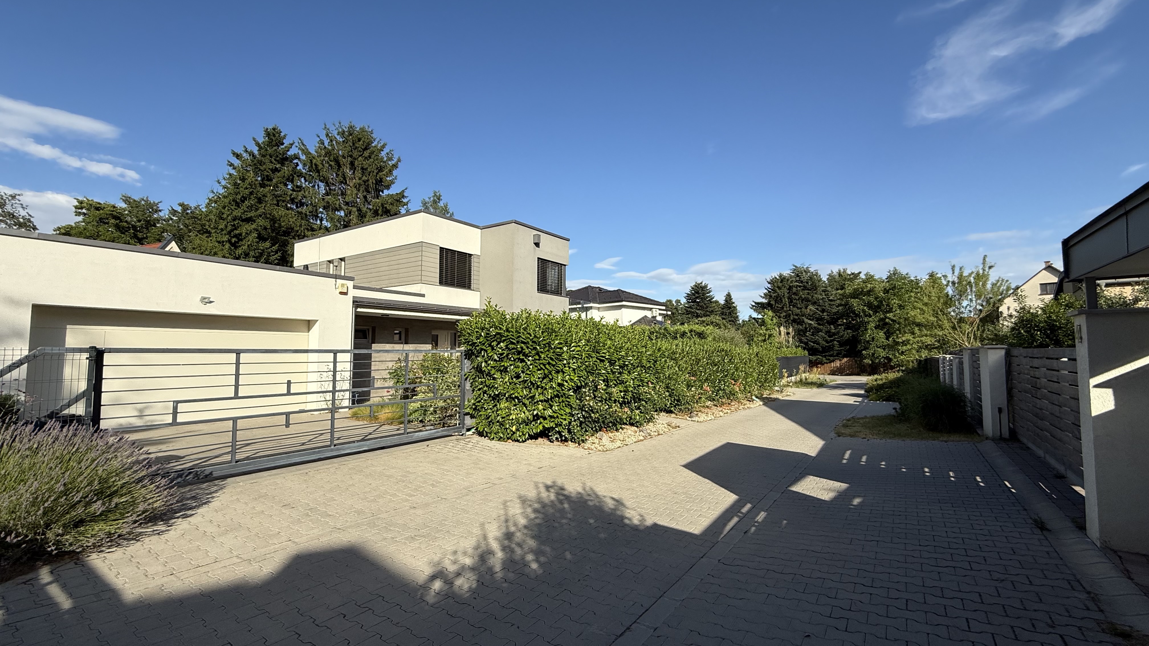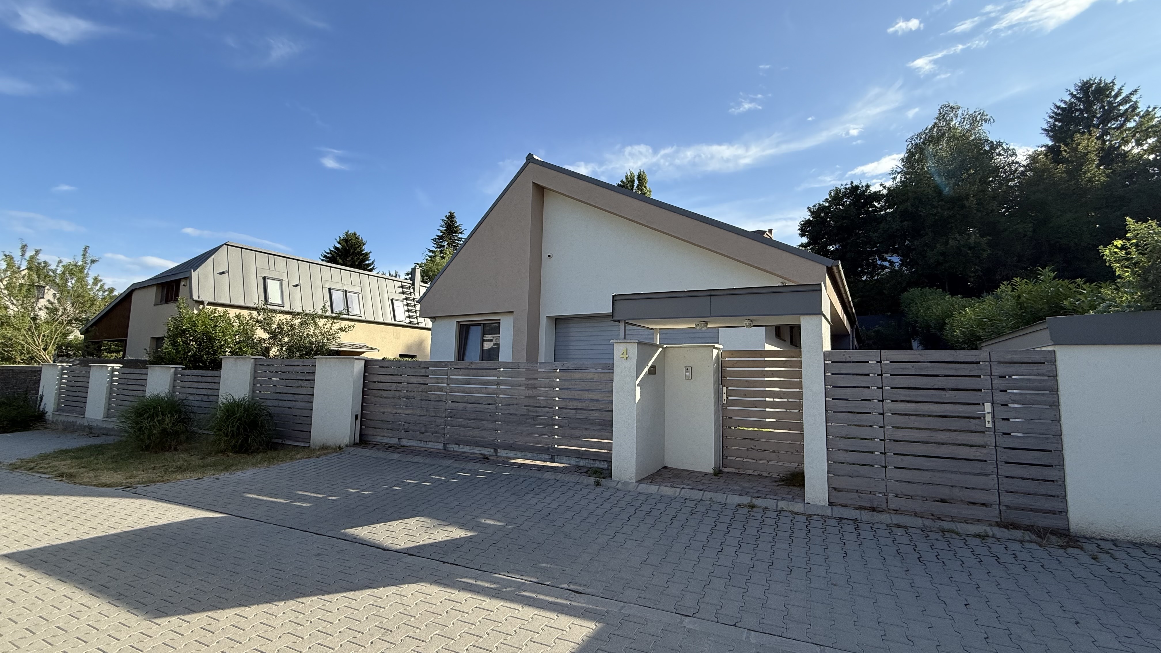 Szentendre Óvárosához közel, a Bükkös patak mellett egy magánúton megközelíthető az újszerű, igényes, magas műszaki tartalommal épült családi ház. A földszinten tágas nappali, tolóajtóval elválasztott, de könnyen összenyitható konyha, 3 hálószoba, 2 fürdőszoba és mosókonyha helyezkedik el. A nappali hatalmas toló-üvegajtói a teraszra, kertre nyílnak. A konyhából és a privát fürdőszobás hálókból is van teraszkapcsolat.