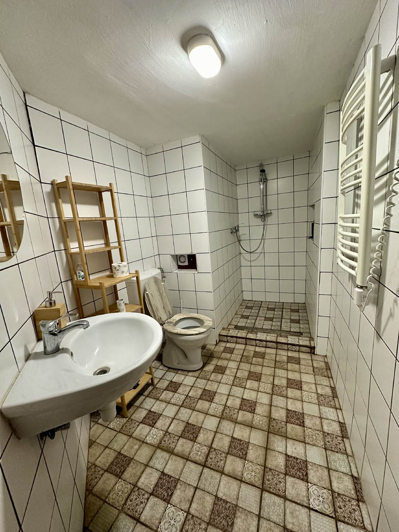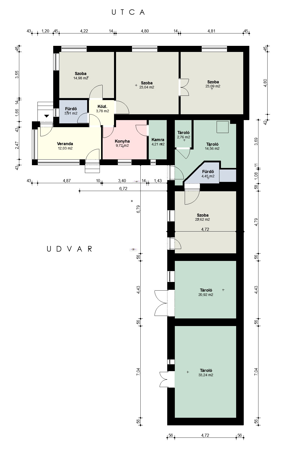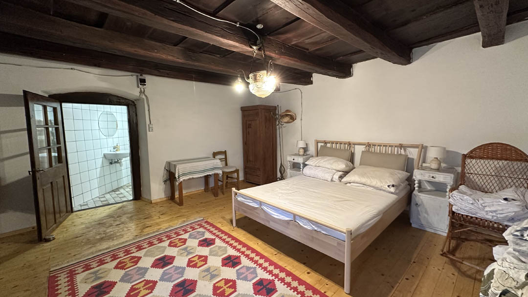 A kert felőli szárnyban vendégszoba fürdőszobával külön bejáratos. Mellette 2 tágas tároló helyiség van, ami akár lehet további vendégszoba.