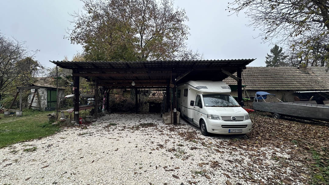 Fedett autóbeállók vannak, 2 autó kényelmesen elfér, sőt kisbusznak is megfelelő a magasság. Kajakok, motorcsónak is elfér.