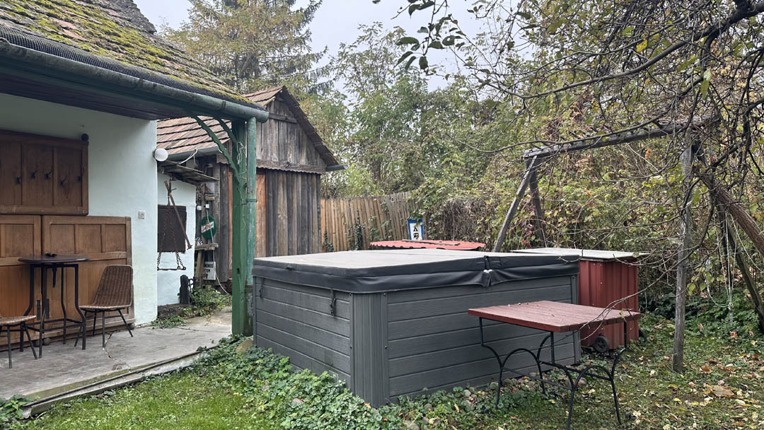 A kertben jacuzzi, zárt modern lávaköves szauna és dézsafürdő található.
