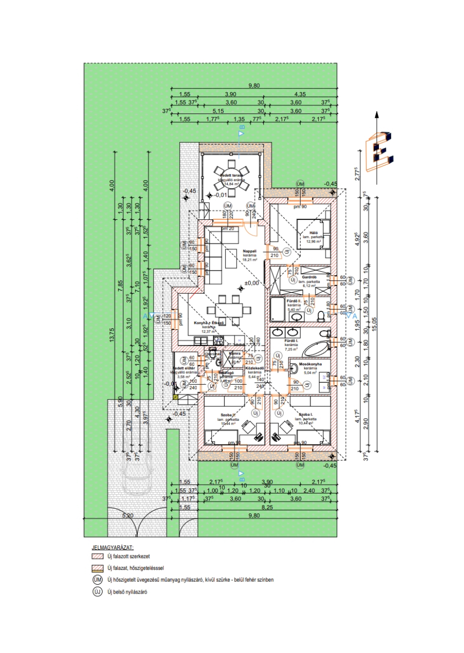 Födém: 25 cm a födémhez előírt szigetelés vastagság.