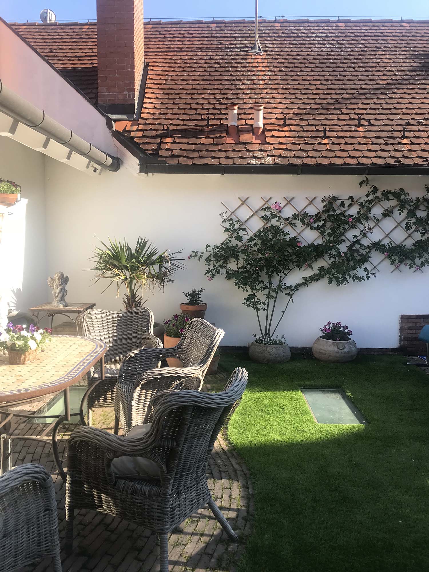 A ház két utcára nyílik, ami nagyon praktikus. Az alsó szintre autóval érkezel a garázsba, a lifttel kényelmesen fel tudod vinni a csomagjaid.